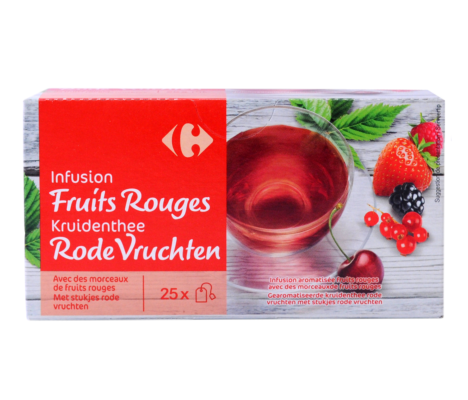 Կարմիր հատապտուղների թուրմ, 40 գր, 25 հատ Բաղադրությունը՝ հատապտուղներ, բուրահաղորդիչներ Պահպանել չոր տարածքում Օգտագործել մինչև տուփի վրա նշված ժամկետը Արտադրված է Ֆրանսիայում Ներմուծող «Մաջիթ Ալ Ֆութաիմ Հայփերմարքեթս էյ-էմ» ՍՊԸ