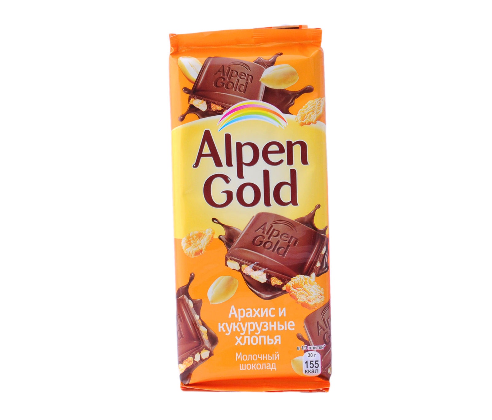 Ալպեն Գոլդ Կաթնային շոկոլադ Գետնանուշ և եգիպտացորենի փաթիլներ 90գ